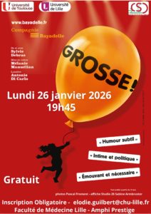 Le CSO de Lille vous proppose une pièce de Théâtre le Lundi 26 Janvier 2026, à 19h45, à la Faculté de Médecine de Lille (Amphi Prestige) qui sera suivie d’une soirée débat.